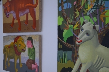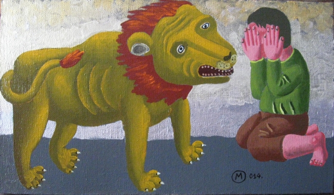 ─ «Не бойся, мальчик» - выставка в первый раз по-настоящему наивная. До сих пор за нарочито примитивистским художественным языком живописи художника скрывались порой весьма едкие, ироничные мэсседжи, лишенные какой-либо наивности. Некоторые его выставки даже носили сознательно провокационный политический характер. Но только не сейчас. Сейчас ерничать по поводу происходящего – это резать по живому. Достаточно того, что творится в телеящиках, социальных сетях и головах граждан. Пришло время умиротворять и избавлять от страхов. Художник так комментирует идею выставки: «Не бойся, мальчик» - это я говорю в каком-то смысле самому себе в связи с текущими событиями. Все эти звери, тигры и львы всякие – нестрашные, потому что они не настоящие, они как бы игрушечные. Нужно успокоиться, нужно не бояться». Звучит, как будто бы, наивно…─ размышляет искусствовед.