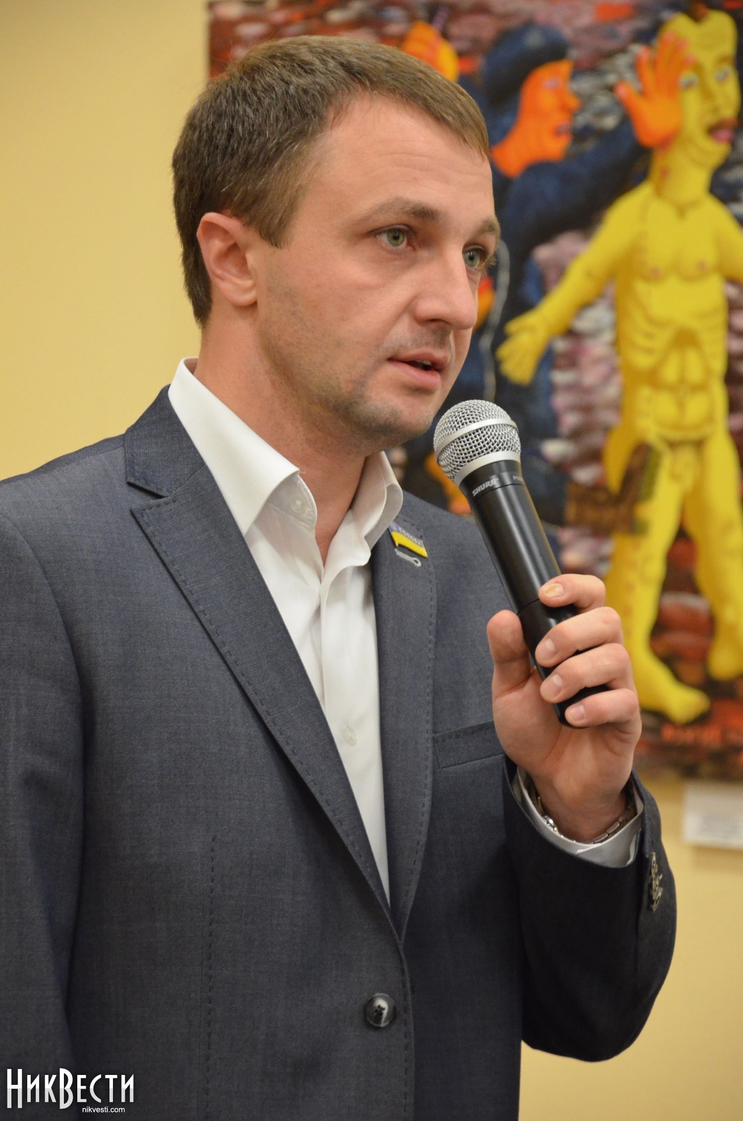 Глава Николаевского областного совета Тарас Креминь напомнил собравшимся в муниципальном выставочном зале, что борьба еще не закончена, и что всего в нескольких сотнях километрах отсюда продолжается война за независимость.