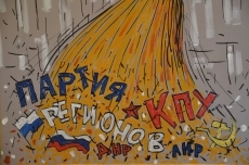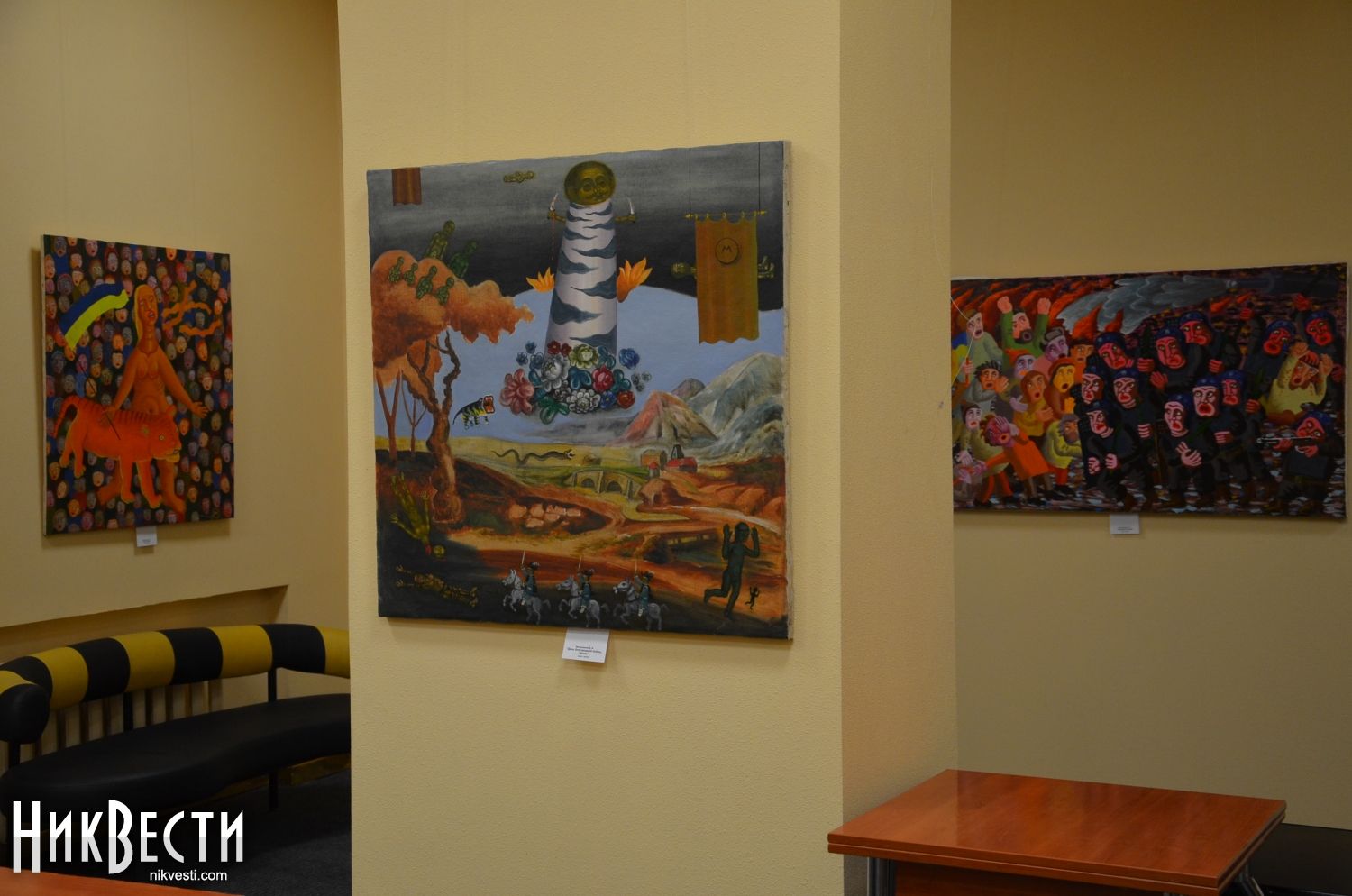 Картины Вадима Пустыльника, Дмитрия Молдованова, Олега Коллара, Олега и Ольги Колбановых, Алексея Малых, Геннадия Молчанова и Алексея Маркитана засвидетельствовали в аллегорической форме факты из современной украинской истории, которые свежи в нашей памяти.