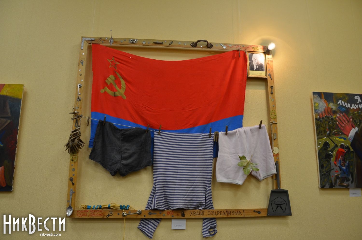 Помимо картин, зрителей удивляли несколько нестандартных инсталляций на тему нашего далекого и недалекого прошлого, передает корреспондент НикВестей.
