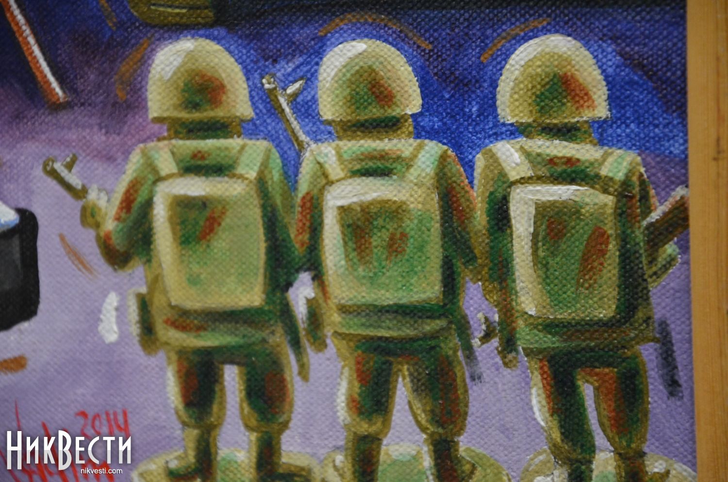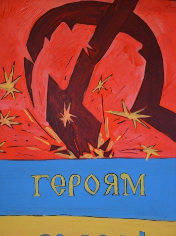 По свидетельству организаторов выставки представленные работы отображают 10-летний период (2004-2014) сражения украинских патриотов за освобождение Украины из пут советского прошлого.