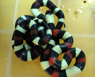 Змея молочная Кэмпбелла считается одной из самых красивых террариумных змей. Сочетание насыщенных оттенков красного, черного, белого цветов на языке дикой природы означает только одно: «не подходите ко мне – я опасен!» Но в случае с молочными змеями речь идет лишь о попытке подражания очень ядовитым коралловым аспидам. Змея молочная Кэмпбелла не ядовита