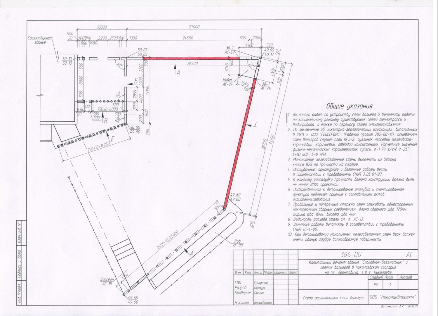 Сообщение иллюстрируется планом и фотографией вольера - на плане стена обозначена красной линией.