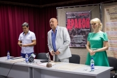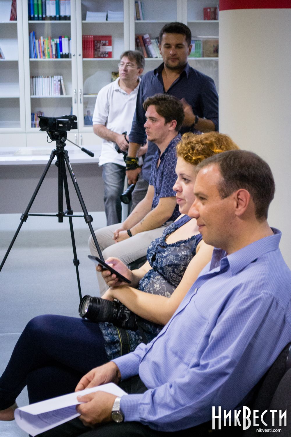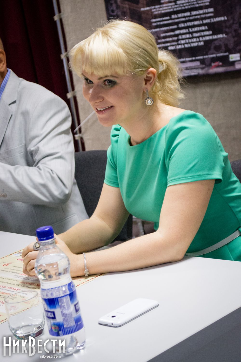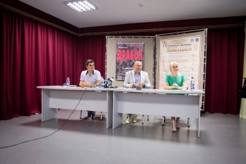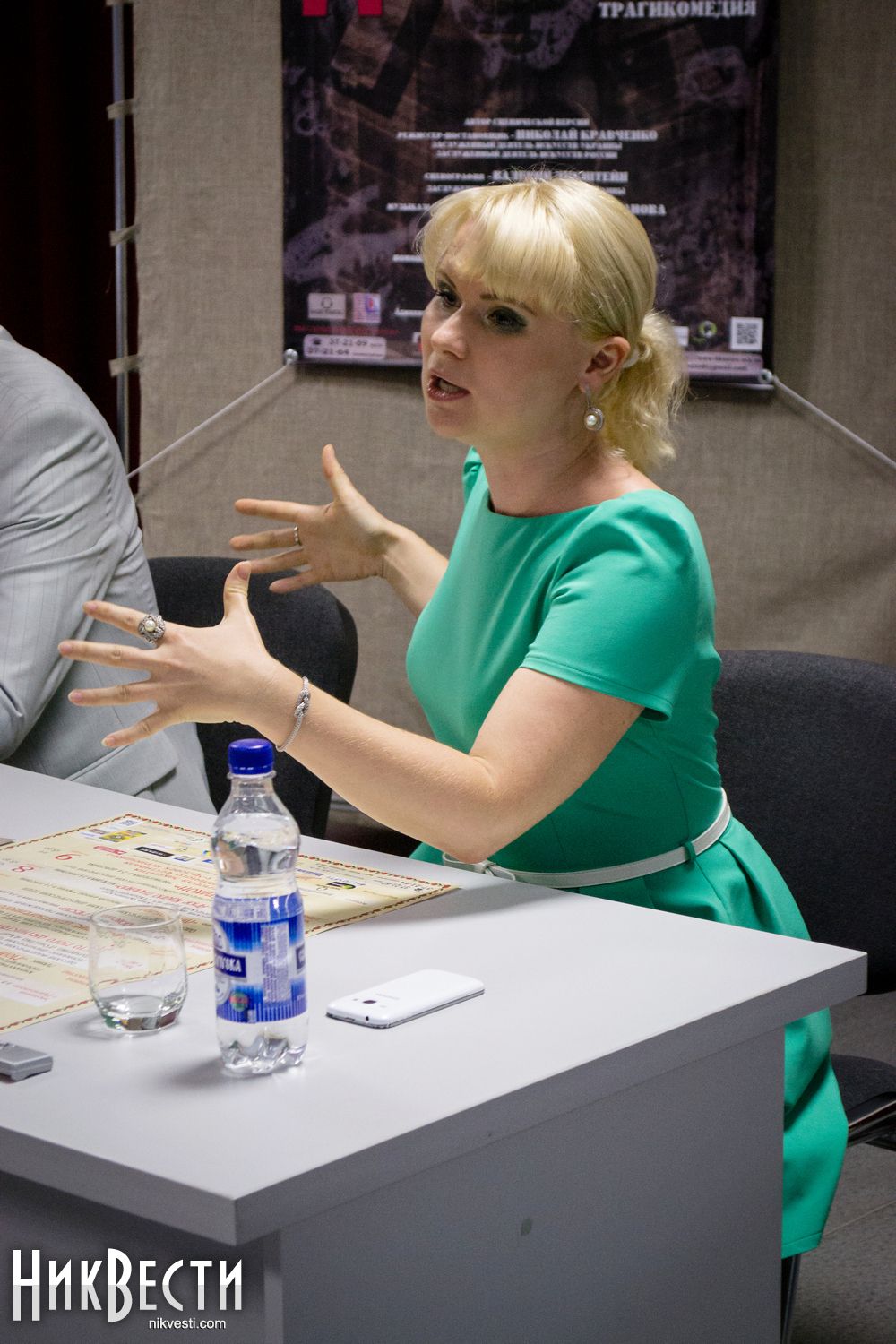 Общаться с прессой Николаю Кравченко помогали директор-распорядитель театра Артем Свистун и руководитель литературно-драматургической части театра Марина Васильева.