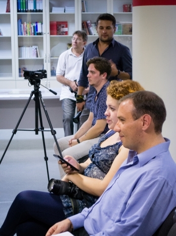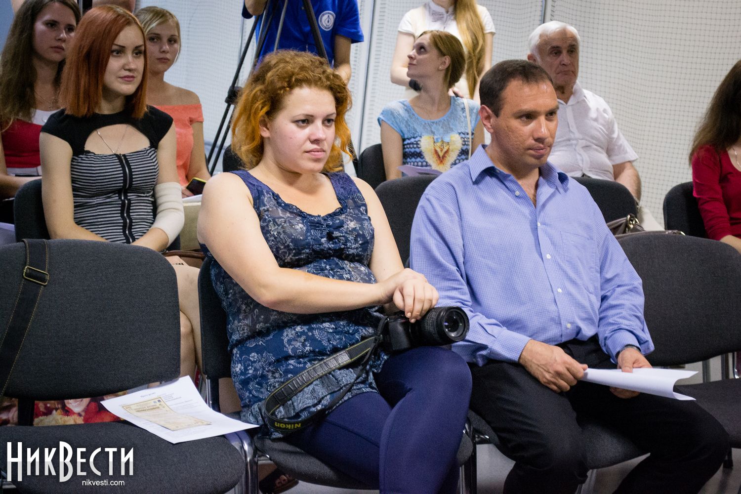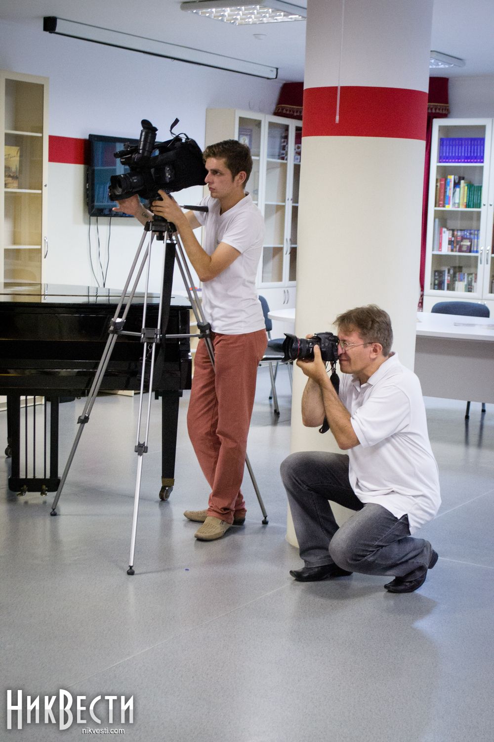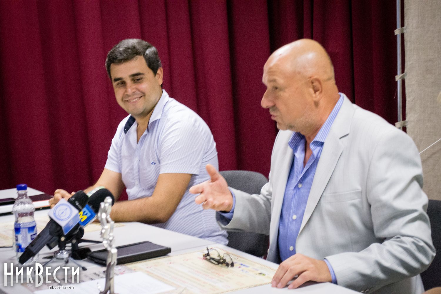 Общаться с прессой Николаю Кравченко помогали директор-распорядитель театра Артем Свистун и руководитель литературно-драматургической части театра Марина Васильева.