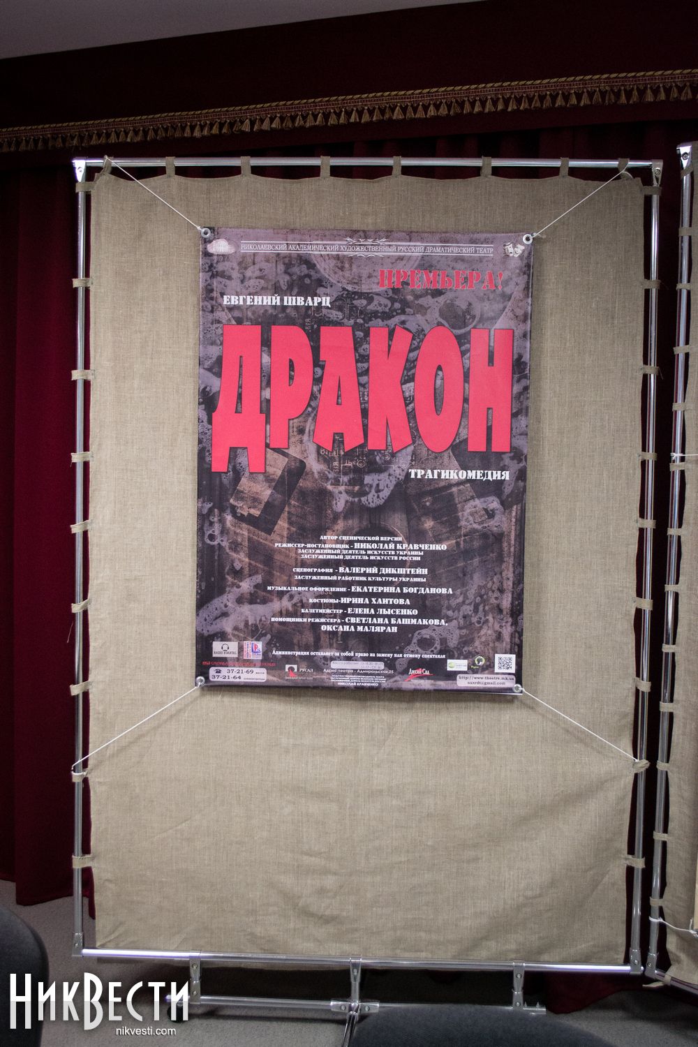 Сам художественный руководитель объяснил свой выбор известнейшей пьесы Евгения Шварца «Дракона» тем, что это классика, любимая во всем мире. Однако постановка николаевского театра будет отличаться от оригинала.