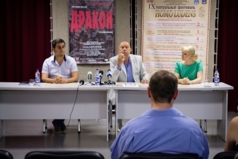 После этого Николай Кравченко пригласил всех к предпросмотру спектакля «Дракон». Именно эта трагикомедия закроет фестиваль «Homo Ludens» 9 октября.