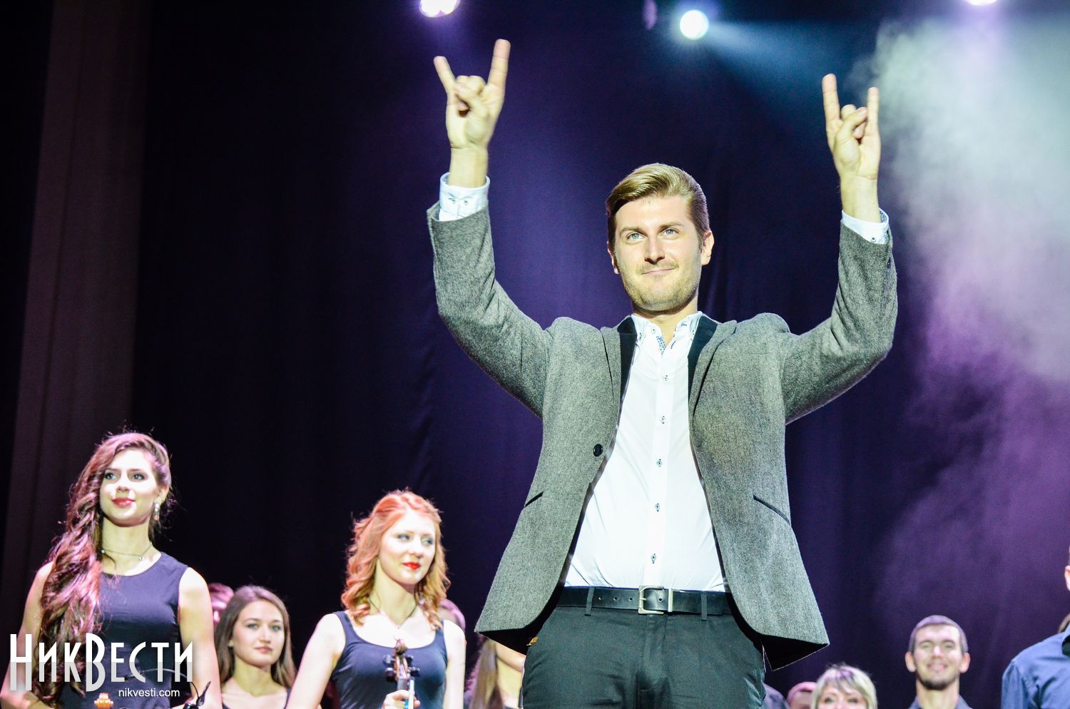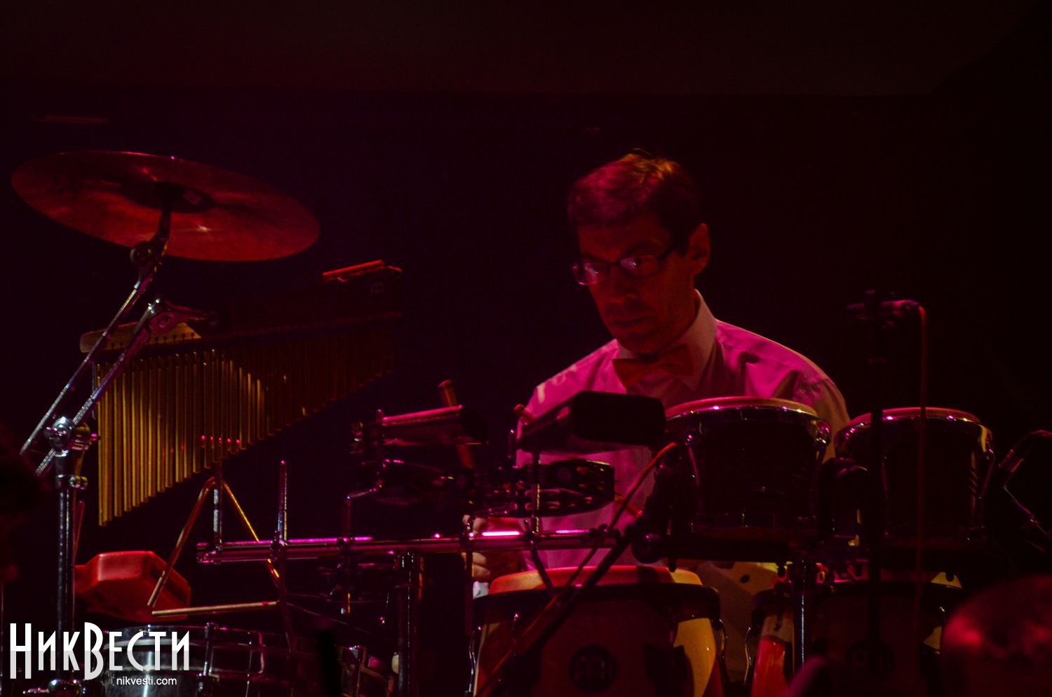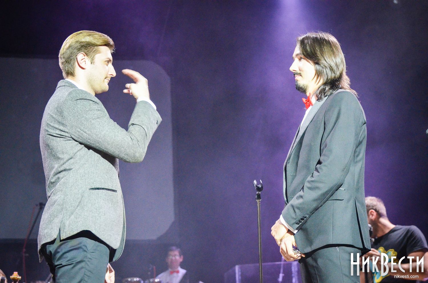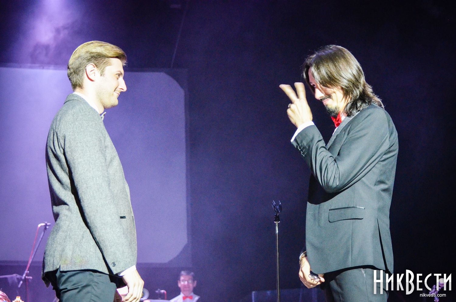 Перед началом представления Владимир Алексеев поблагодарил руководителя музыкального колледжа Анатолия Сироту и николаевского политика Виталия Воронова за многолетнюю помощь джаз-движению Николаева.