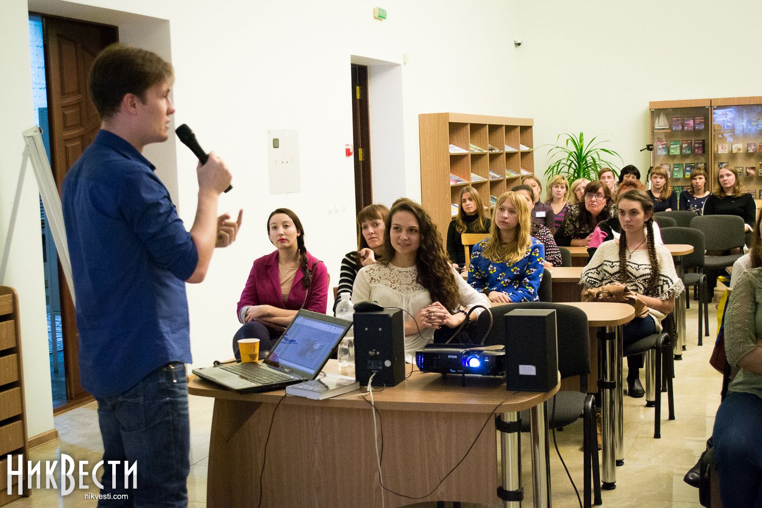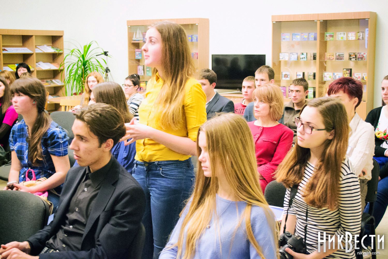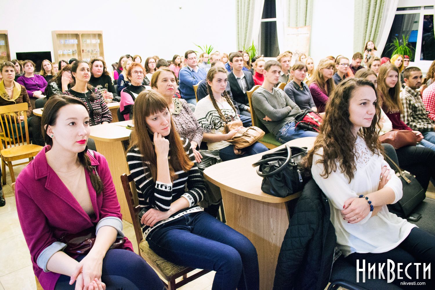 Встреча с Максимом Кидруком активизировала николаевцев, преимущественно студентов, которые полностью заполнили читальный зал библиотеки имени Алексея Гмырева, передает корреспондент НикВестей.
