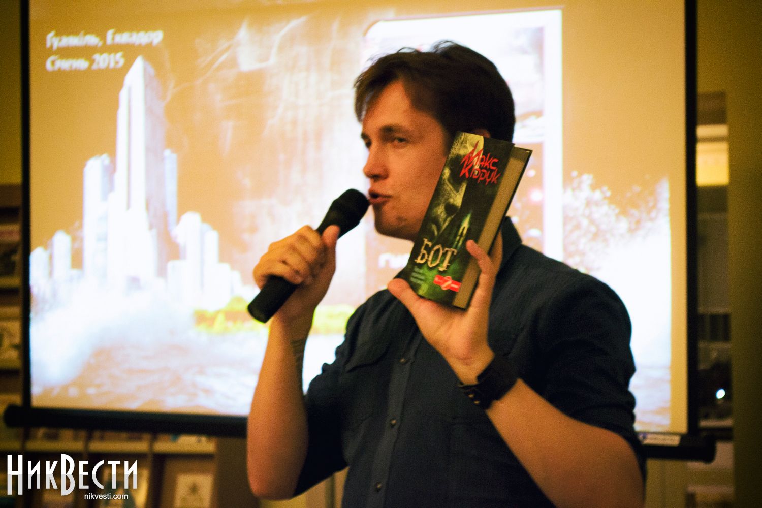 11 ноября один из самых востребованных современных украинских писателей Максим Кидрук презентовал в Николаеве свою новую книгу «Бот. Гуаякильский парадокс». Роман является продолжением технотриллера «Бот», который вышел 3 года назад. Писатель привез книгу в Николаев в рамках всеукраинского промо-тура. Позади, по его словам, осталось уже больше 20 городов, накануне он презентовал книгу в Одессе, а его следующая остановка – в Херсоне.