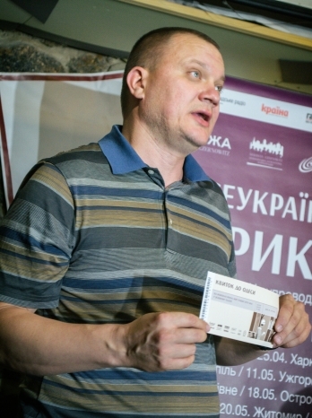 – Я этот тур называю путешествием троих: слепого пророка-оракула, его последовательницы и слуги-поводыря. Мы катаемся городами «Мережи» – такой литературной сети, неформальной тусовки, которую создала наша корпорация культурных менеджеров в 30 городах Украины, – рассказал он.