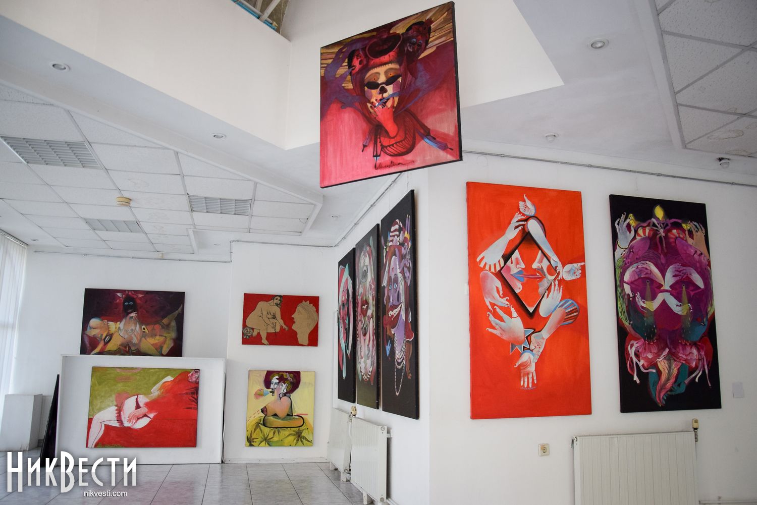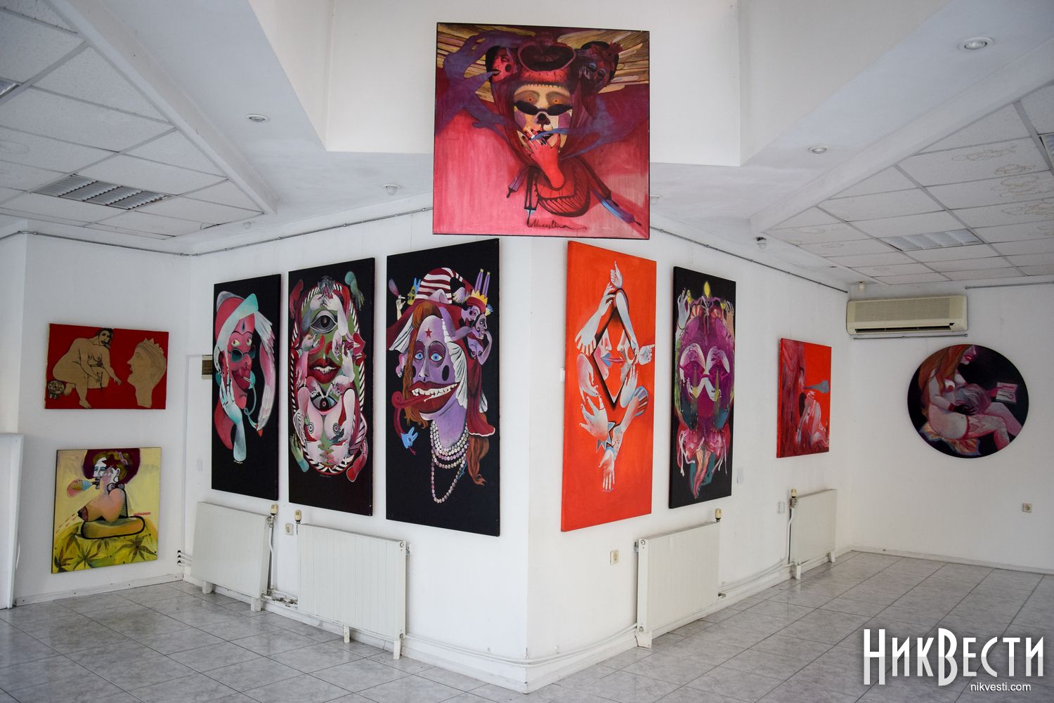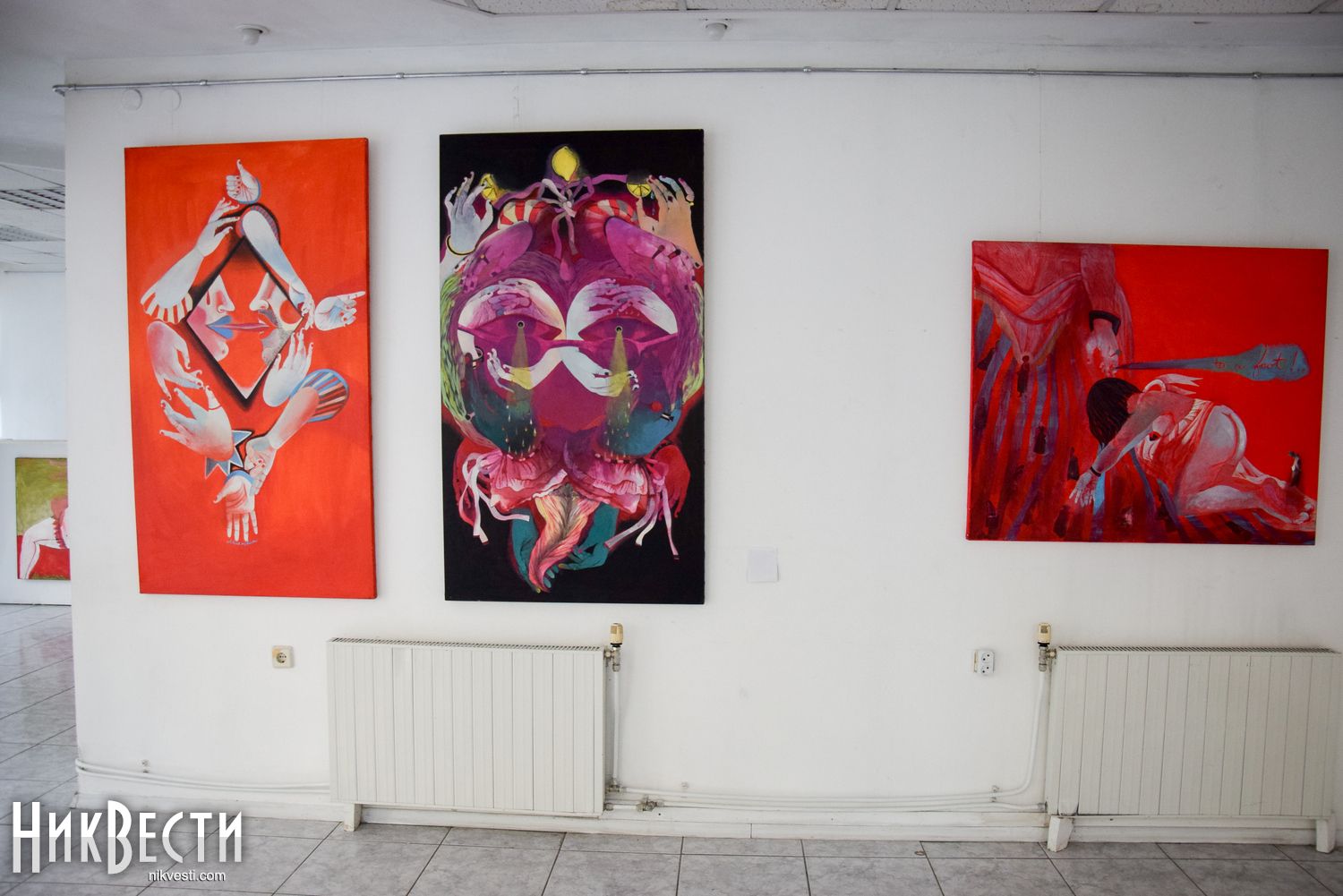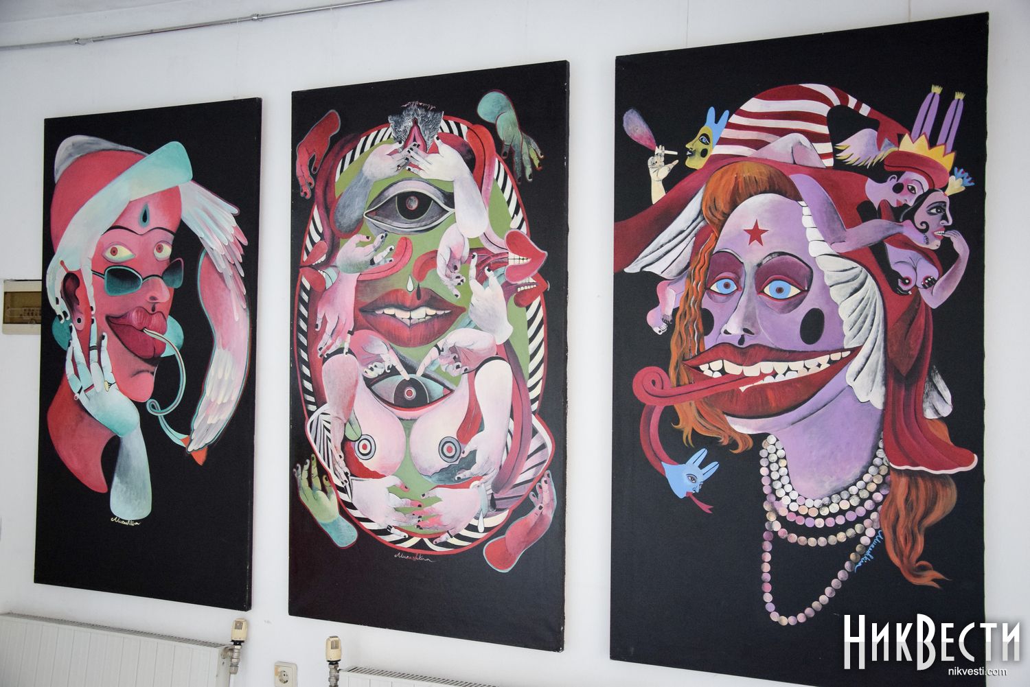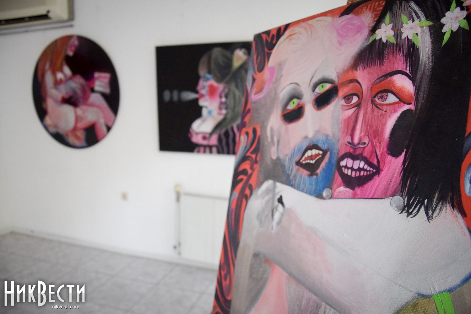 – Я очень хотел, чтобы Нина сделала выставку в Николаеве. Это большая редкость, когда женщина раскрывает свою душу, или даже «вскрывает себе вены», как будто говоря: «Вот она я, смотрите!» И это все с привкусом балаганного искусства, напоминающего рекламу цирка начала прошлого века. Постмодернизм – это искусство цитатное. А ее работы – это и есть цитаты. Когда мы делали экспозицию, мы так и хотели – создать атмосферу цирка. Человек в нем вскрывает вены, а кровь течет настоящая. Вот такой у нас цирк, – описал экспозицию Дмитрий Молдованов.