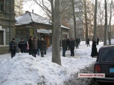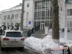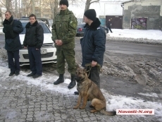 К зданию уже прибыл проводник со служебной собакой, в настоящее время ждут приезда взрывотехников — их в Николаеве всего 3 человека и все они задействованы на мероприятиях по обеспечению безопасности президента Петра Порошенко.