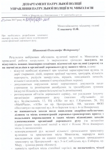 Патрульные обеспокоились хаосом в организации дорожного движения Николаева и снова обратились к мэрии