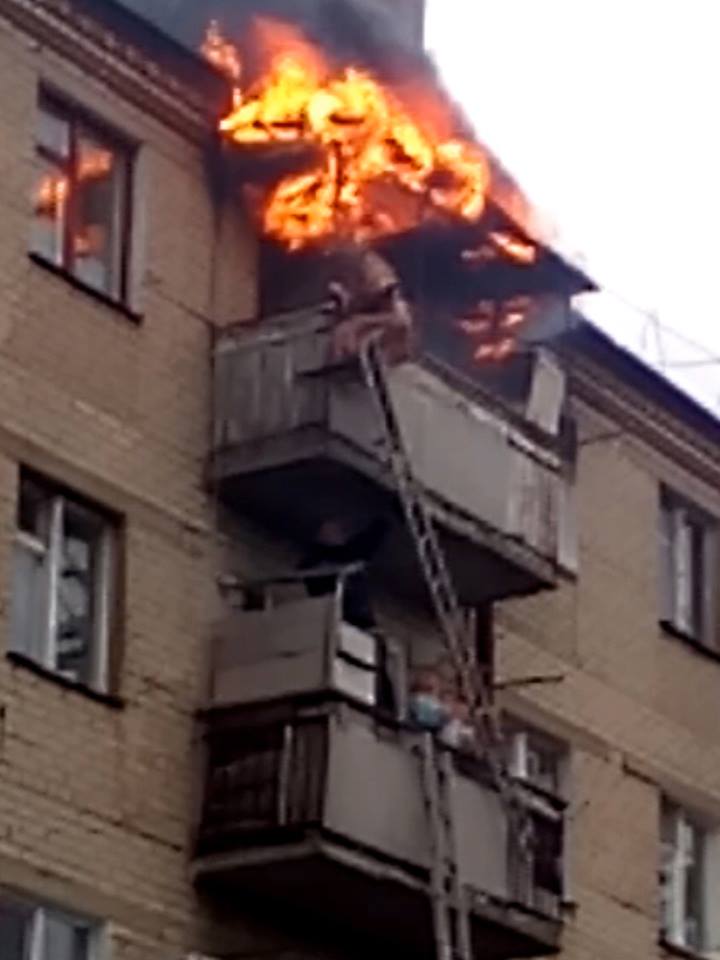 Командир отделения 3-й Государственной пожарно-спасательной части, старший прапорщик службы гражданской защиты Виталий Андреев, поднявшись по трехколенной лестнице на балкон четвертого этажа здания, установил штурмовую лестницу. Женщина, находясь в шоковом состоянии, ухватилась за нее, но не удержалась, и начала падать вниз.