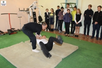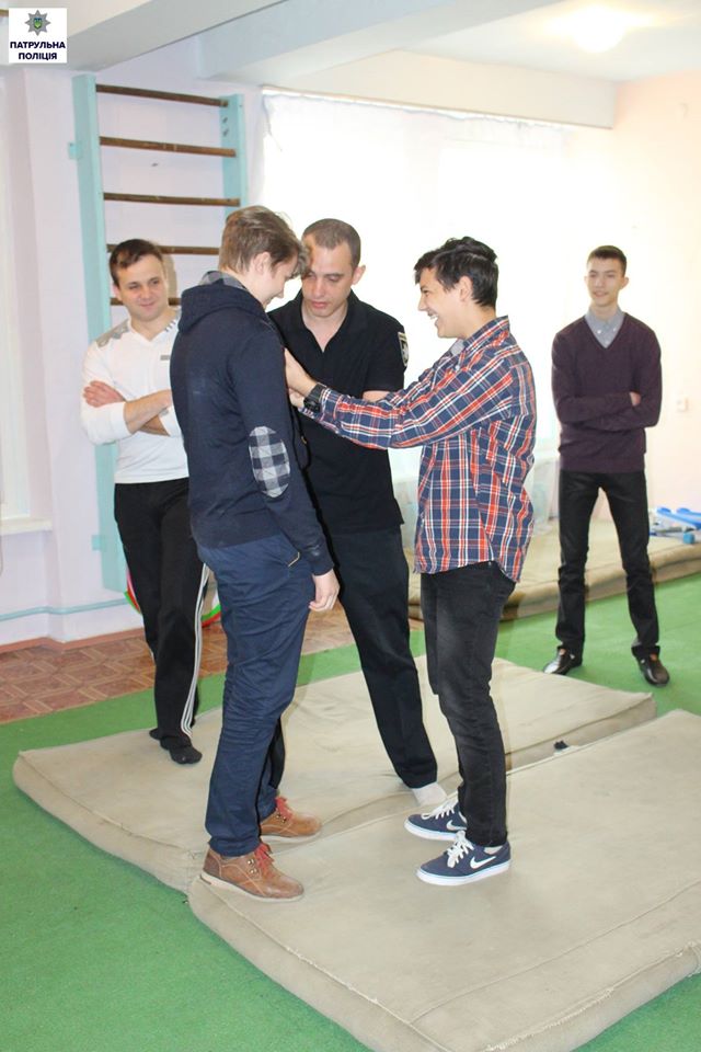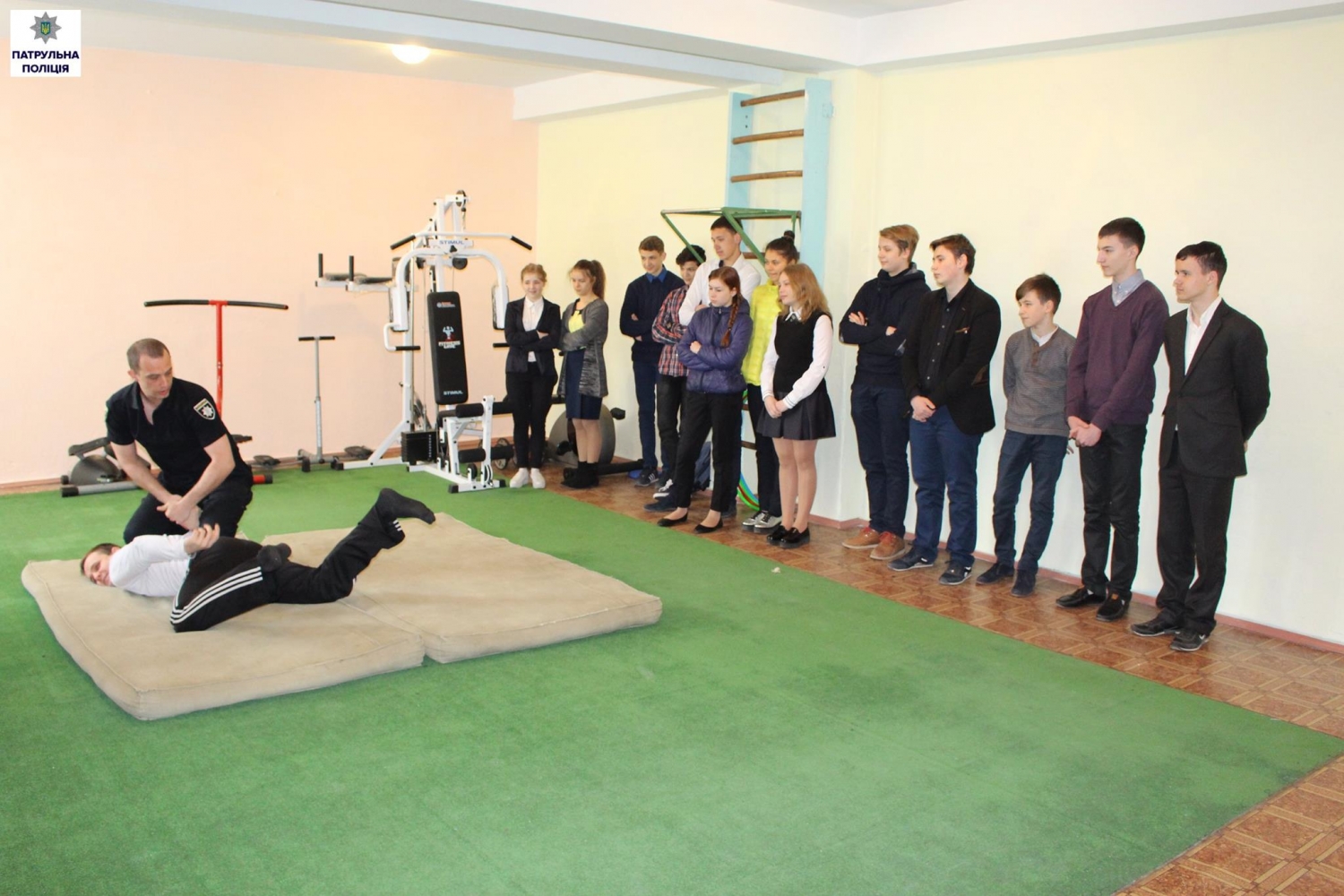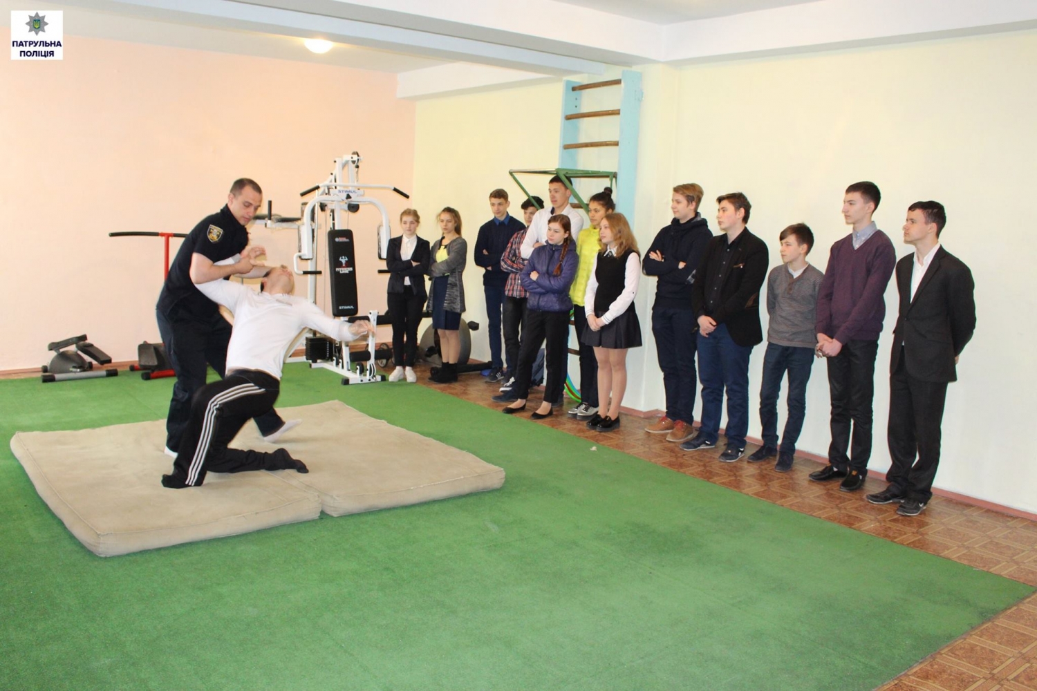 Николаевские патрульные показали школьникам, как давать отпор в случае нападения