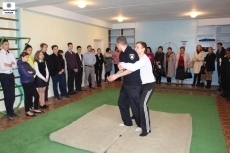 Николаевские патрульные на практике продемонстрировали, как нужно действовать в случае нападения преступника, и алгоритм действий самих полицейских при задержании правонарушителей. Все желающие смогли попробовать на практике применить продемонстрированы приемы.