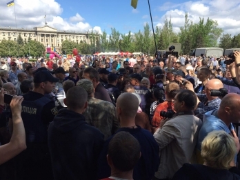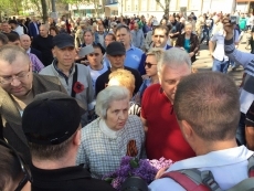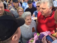 Отметим, во время беседы полицейских с женщиной их окружили проукраинские активисты и участники шествия «Бессмертного полка». Время от времени между ними возникала толкотня.