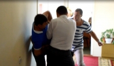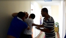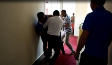 Однако когда все-таки удалось выбраться в вестибюль, журналисты стали свидетелями драки, в ходе которой Владимир Фроленко зажал шею Федору Барне, а неизвестный мужчина при этом избивал его.