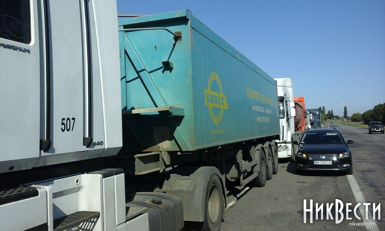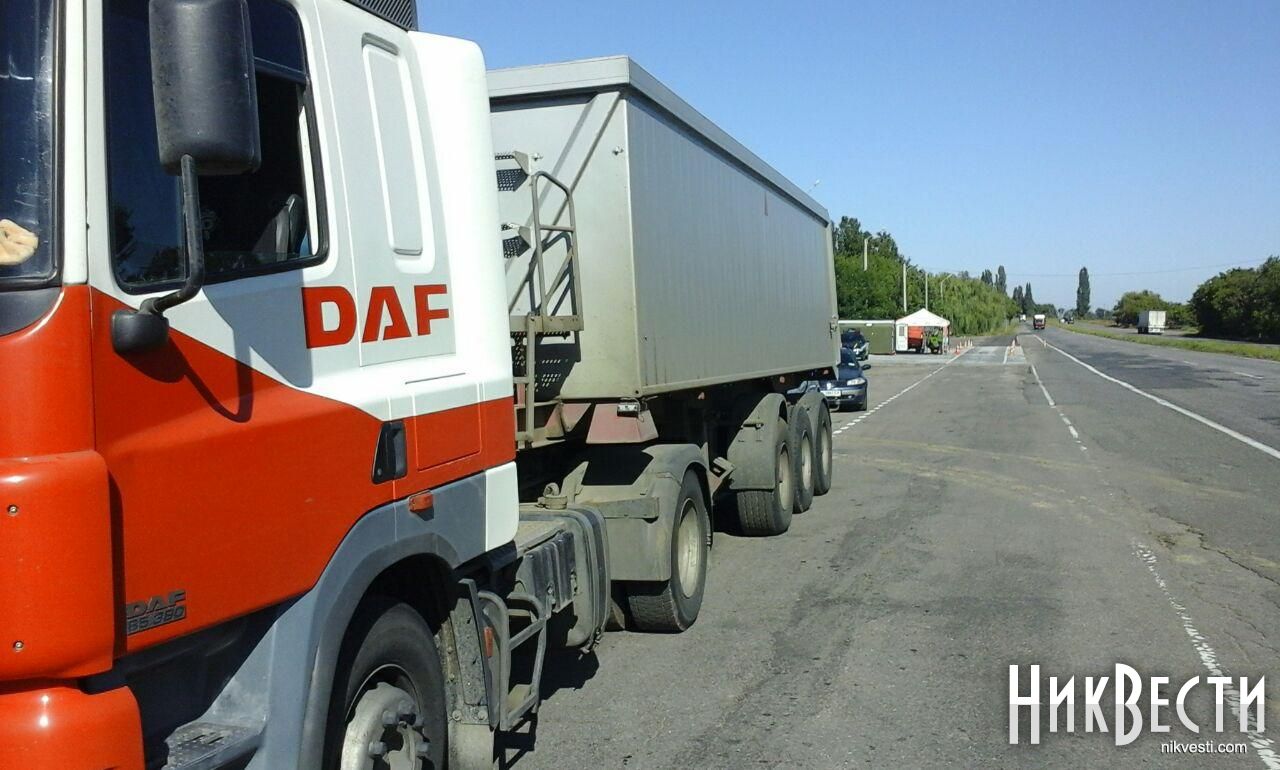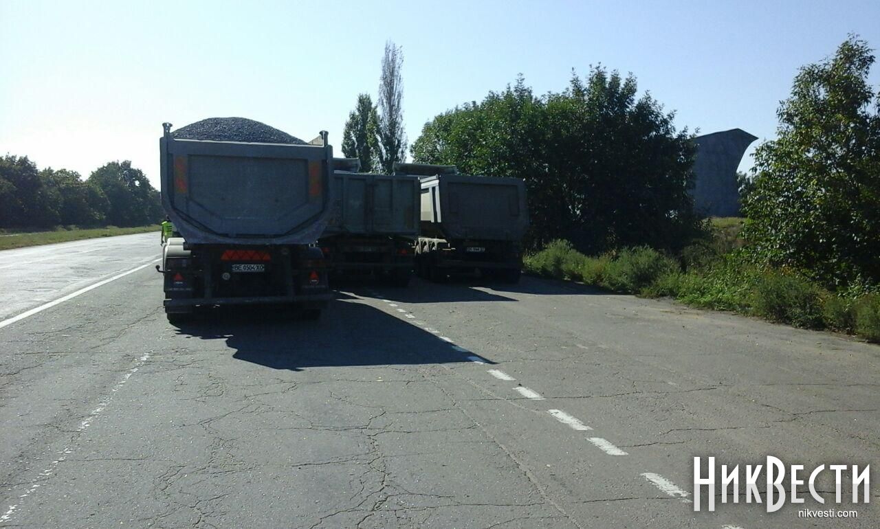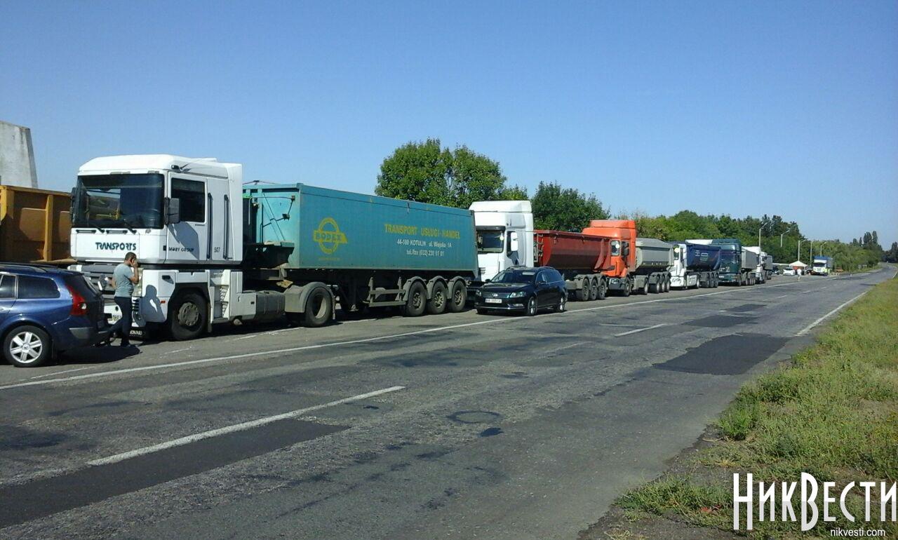 Сегодня, 14 сентября, на трассе Р-06 «Николаев-Ульяновка» вблизи села Гурьевка, где расположен габаритно-весовой комплекс, скопилось около 15 фур с щебнем, не желающих проходить контроль.