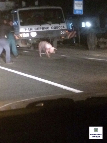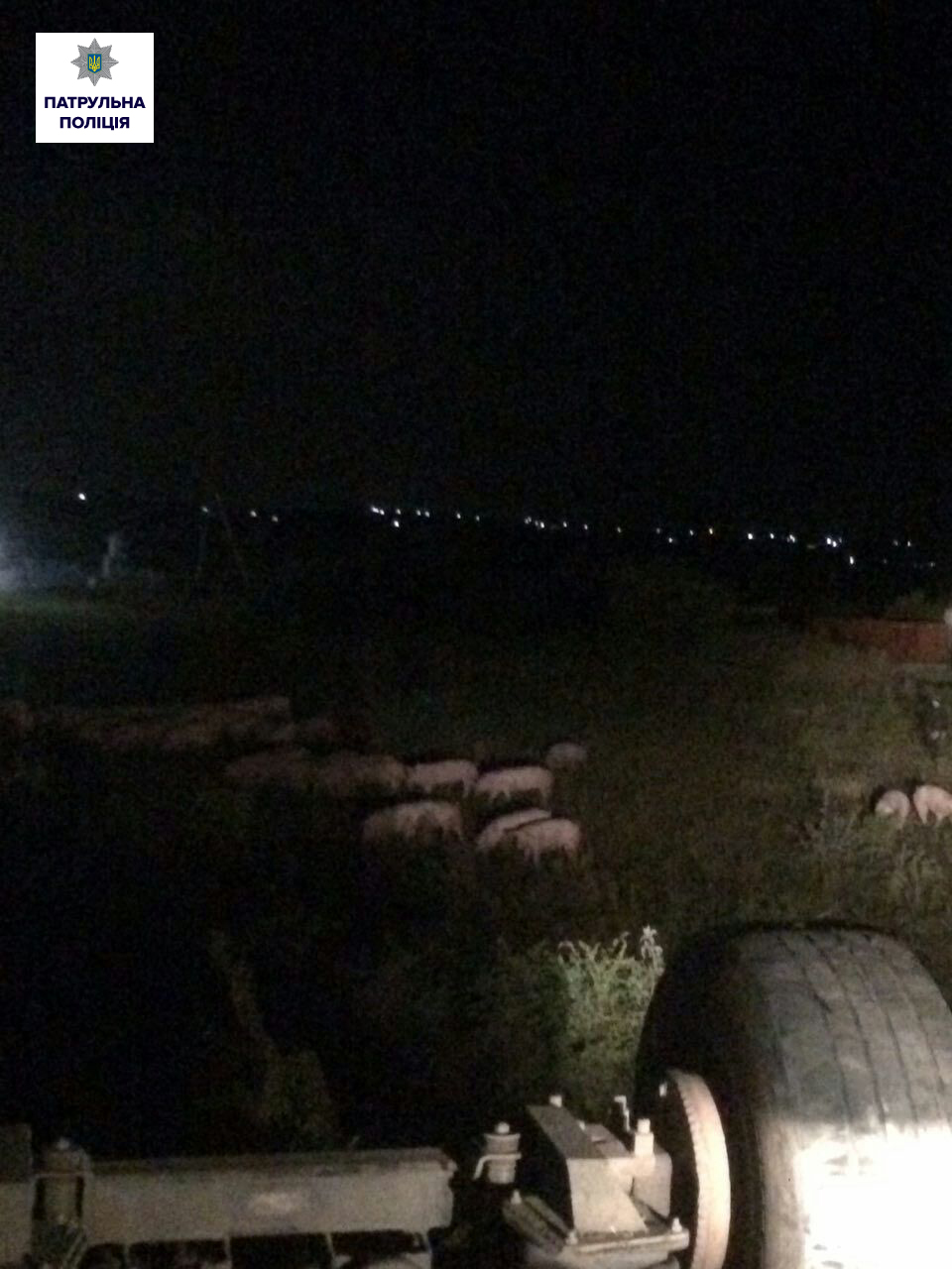 Вечером 2 октября в Коблево перевернулся грузовик DAF с полуприцепом, в котором находились десятки свиней.