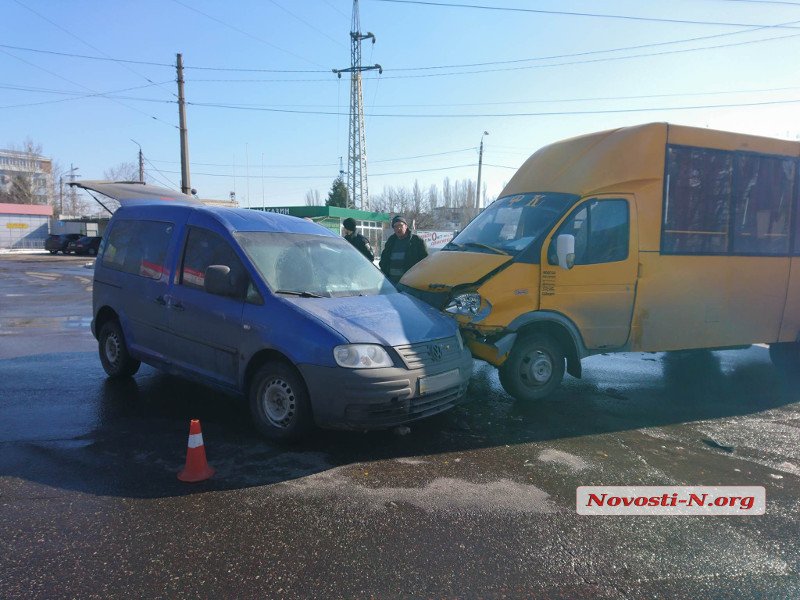 Днем в понедельник, 5 марта, на пересечении улиц Генерала Карпенко и Мореходной в Николаеве столкнулись маршрутка №31 и автомобиль Volkswagen Caddy.