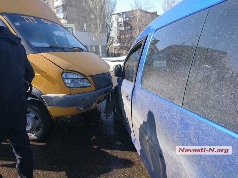 В Николаеве маршрутка с пассажирами врезалась в «Фольксваген»