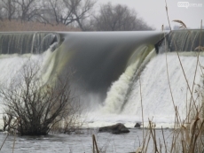 В деревянном щите на плотине Первомайской ГЭС образовалась довольно большая брешь. Уровень воды в Южном Буге значительно поднялся.