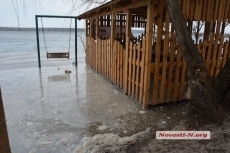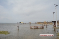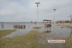 В результате оказалась подтопленной береговая зона. Затоплен городской пляж «Стрелка». Будка службы охраны под Ингульским мостом оказалась со всех сторон отрезанной водой.