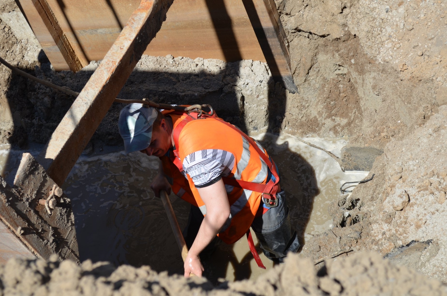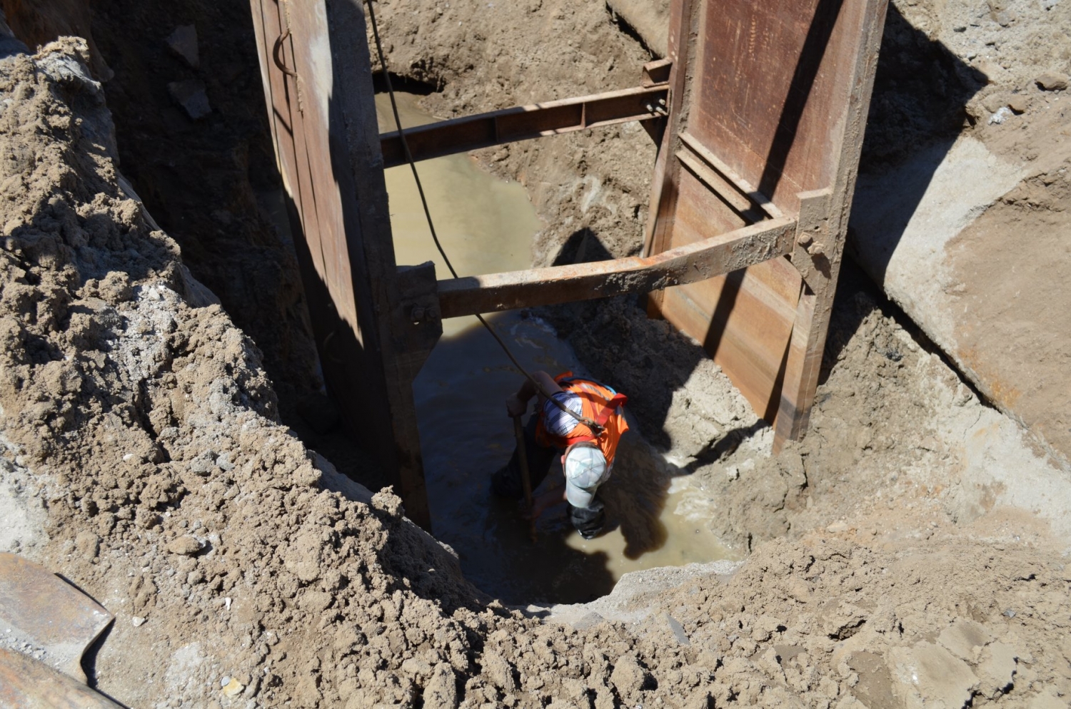 Вторые сутки подряд аварийные службы предприятия работают над ликвидацией аварии на коллекторе по улице Лескова.