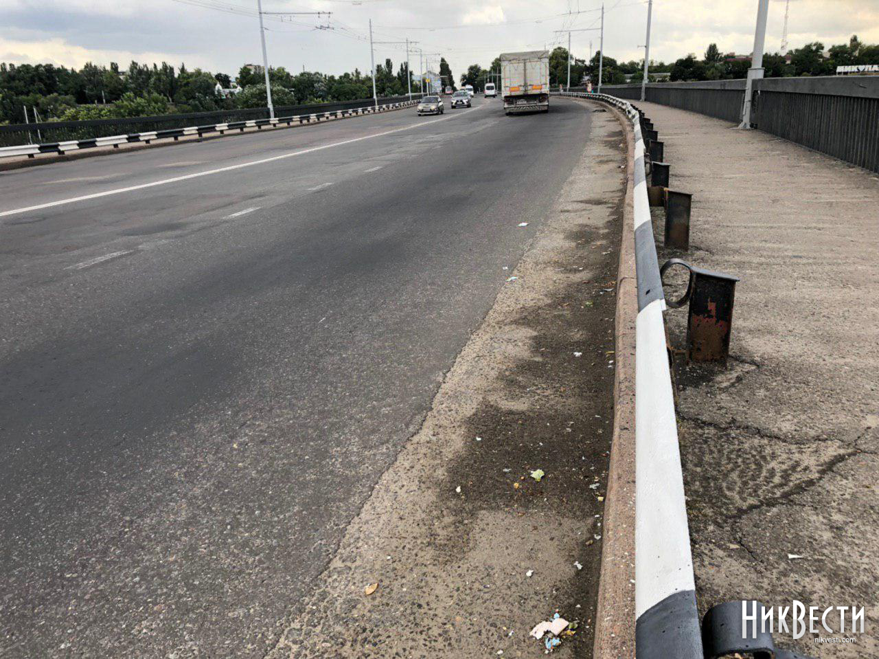 Также по-прежнему есть проблема с уборкой моста, на обочинах скапливается песок и сухие листья. Стоит отметить, что данный участок дороги, который проходит по Ингульскому мосту, находится на балансе Службы автомобильных дорог Николаевской области.