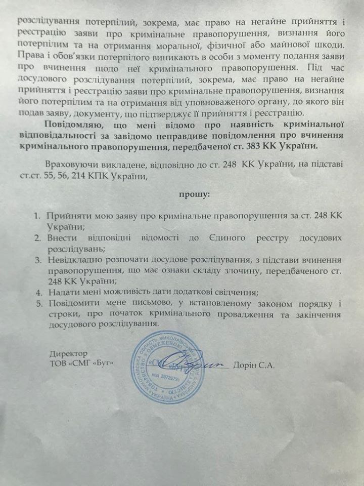 Ночью 26 января егерская служба СМГ «Буг» выявила браконьеров, которые вели незаконную охоту на территории производственного участка. Среди них оказался директор государственного предприятия «Племрепродуктор «Степовое» Владимир Теник.