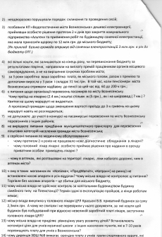 Также в коллективном обращении они раскритиковали Вознесенского городского голову Виталия Лукова за нарушения порядка созыва и проведения сессий, за лишение КП «Водоснабжение города Вознесенска» дешёвой электроэнергии, за трату денег на премии сотрудникам органам местного самоуправления и прочее.