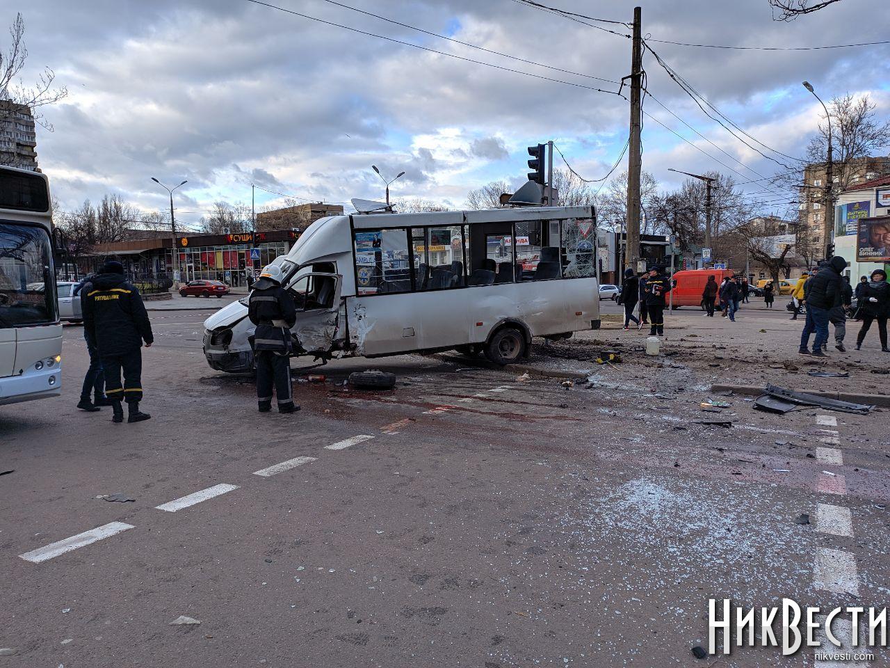 В распоряжении издания НикВести появилось видео столкновения внедорожника и маршрутки с пассажирами на пересечении проспекта Центральный и улицы Московской.