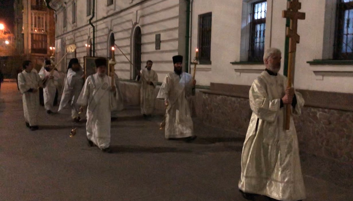 Ночью в Киеве священники Свято-Введенского храма Украинской православной церкви Московского патриархата провели крестный ход, в котором участвовало около полсотни человек. Участники хода были без масок и средств защиты.