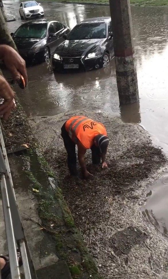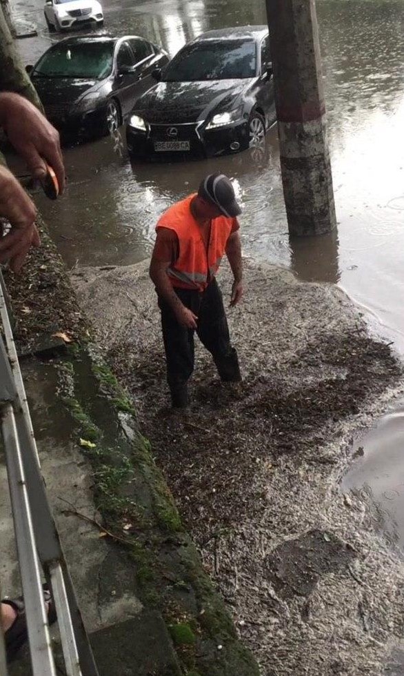 В частности проспект Центральный из-за сильного дождя затопило настолько, что воды было по пояс. Из-за сильного дождя, на выезде из Николаева в сторону Баштанки и Снигиревки образовалась пробка.