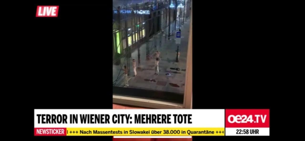 Террористы, одинаково одетые в белые брюки, стояли с поднятыми вверх руками. Площадь Грабен расположена недалеко от синагоги, у которой изначально велась стрельба.