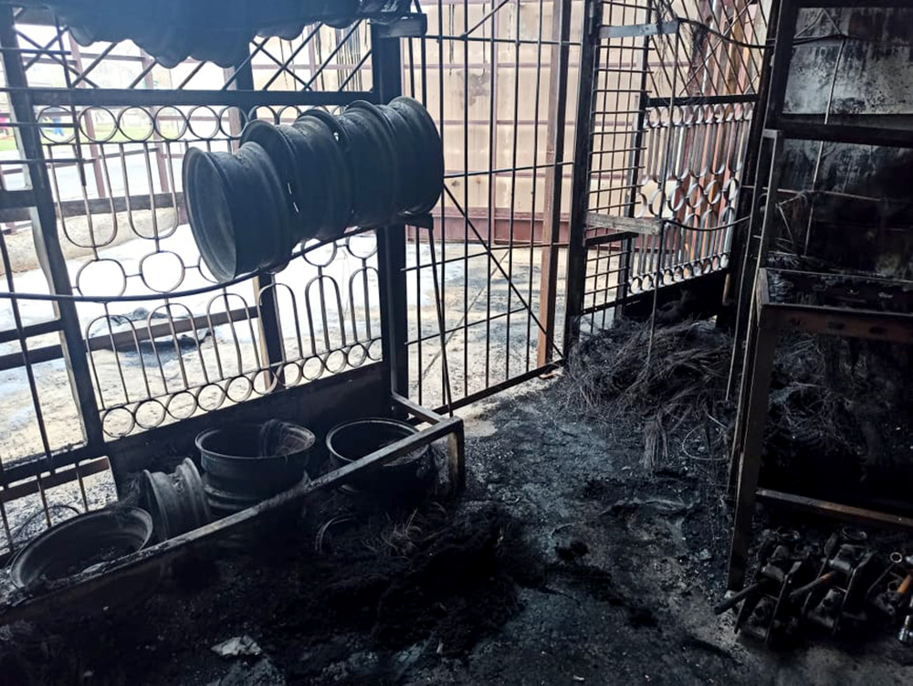 В Южноукраинске подожгли склад с автомобильными шинами