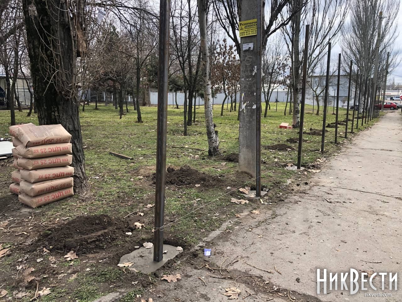 Напомним, ранее сообщалось, что в субботу, 6 марта, в Николаеве начали устанавливать забор на территории зеленой зоны расположенной неподалеку от здания автовокзала. Рабочие выкопали отверстия в земле, залили их цементом и установили в них основания будущего забора.