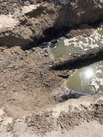 На пляже в Коблево неподалеку от гостиницы нашли трубу, которая, вероятно, осуществляла выбросы в море.