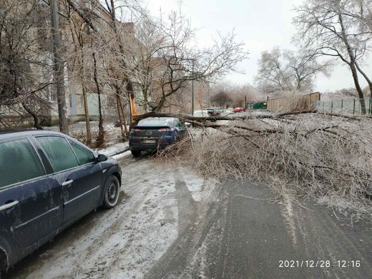 Днем 28 декабря в Николаеве на улице Набережной дерево упало на легковой автомобиль Volt.