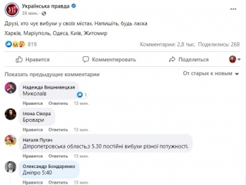 Также очевидцы сообщают в Facebook о взрывах в Днепре, Чернигове, Херсоне.Что именно произошло пока неизвестно.