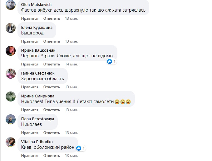 Также взрывы слышны и в Харькове в районе метро Студенческая, в районе Салтовка. Слышны звуки самолетов.О взрывах сообщают и жители Бердянска, Одессы, Житомера.