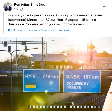 — 779 км до свободного Киева. Минск (временно оккупированный Кремлем) находится в 187 км. Соседи-беларусы, очнитесь, — подписал фото мэр.