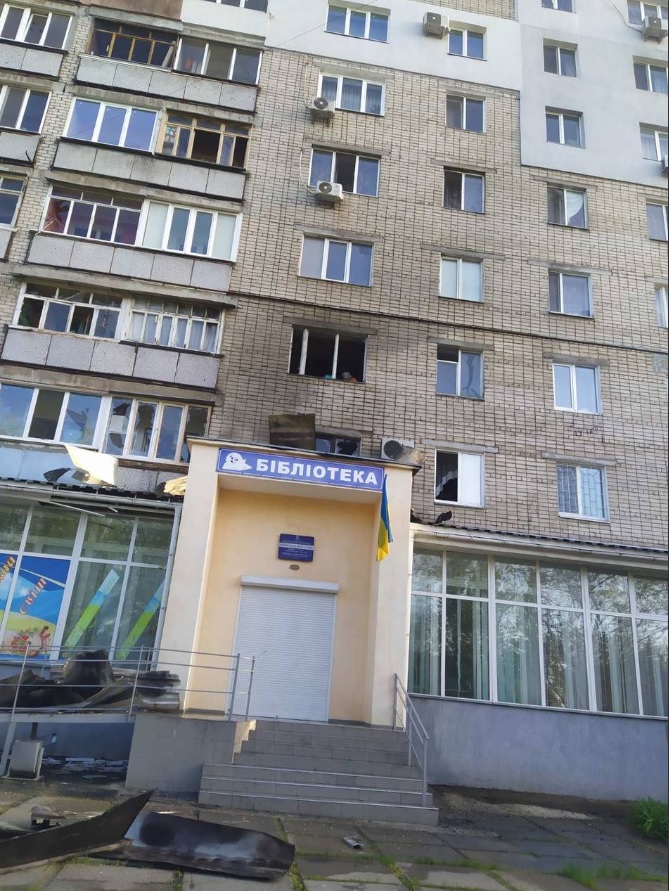В частности, повреждены жилые дома. В одном из них из-за попадания снаряда загорелась библиотека, расположенная на первом этаже.