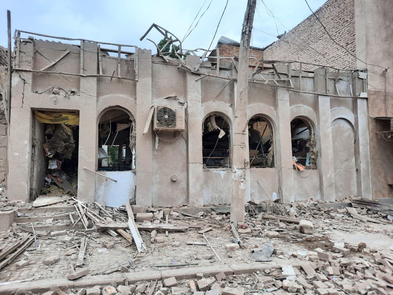 Главное управление ГСЧС Украины в Николаевской области показали фото последствий обстрела центра Нового Буга.