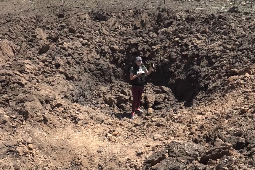 Высота одной из воронок, оставшейся в городе, около 5-6 метров. Артиллерийский удар пришелся по огороду в одном из дворов. Местная жительница Татьяна Деменникова рассказала, что услышала ночью грохот и взрыв. Соседи рассказали, что ударили рядом с домом ее брата. К счастью, мужчины в этот момент на месте не было.