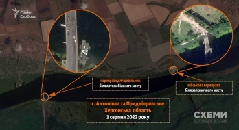 Ця поромна переправа вже друга, яку використовують окупанти. Першу переправу супутник зафіксував ще 1 серпня біля селища Придніпровське Херсонської області.