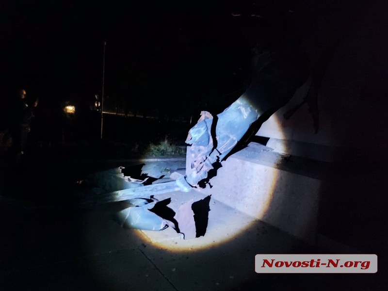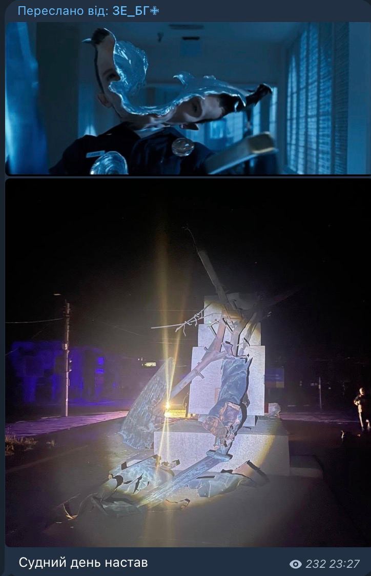 Миколаївський активіст Ілля Зелінський опублікував фото зруйнованого пам‘ятника у своєму Телеграм-каналі зі словами «Судний день настав».