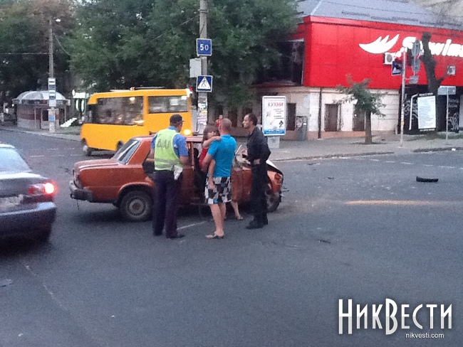 Сегодня, 19 июля, около 20:40, в самом центре Николаева, на пересечении улицы Московская и проспекта Ленина произошло столкновение автомобилей ВАЗ-2101 и LEXUS.